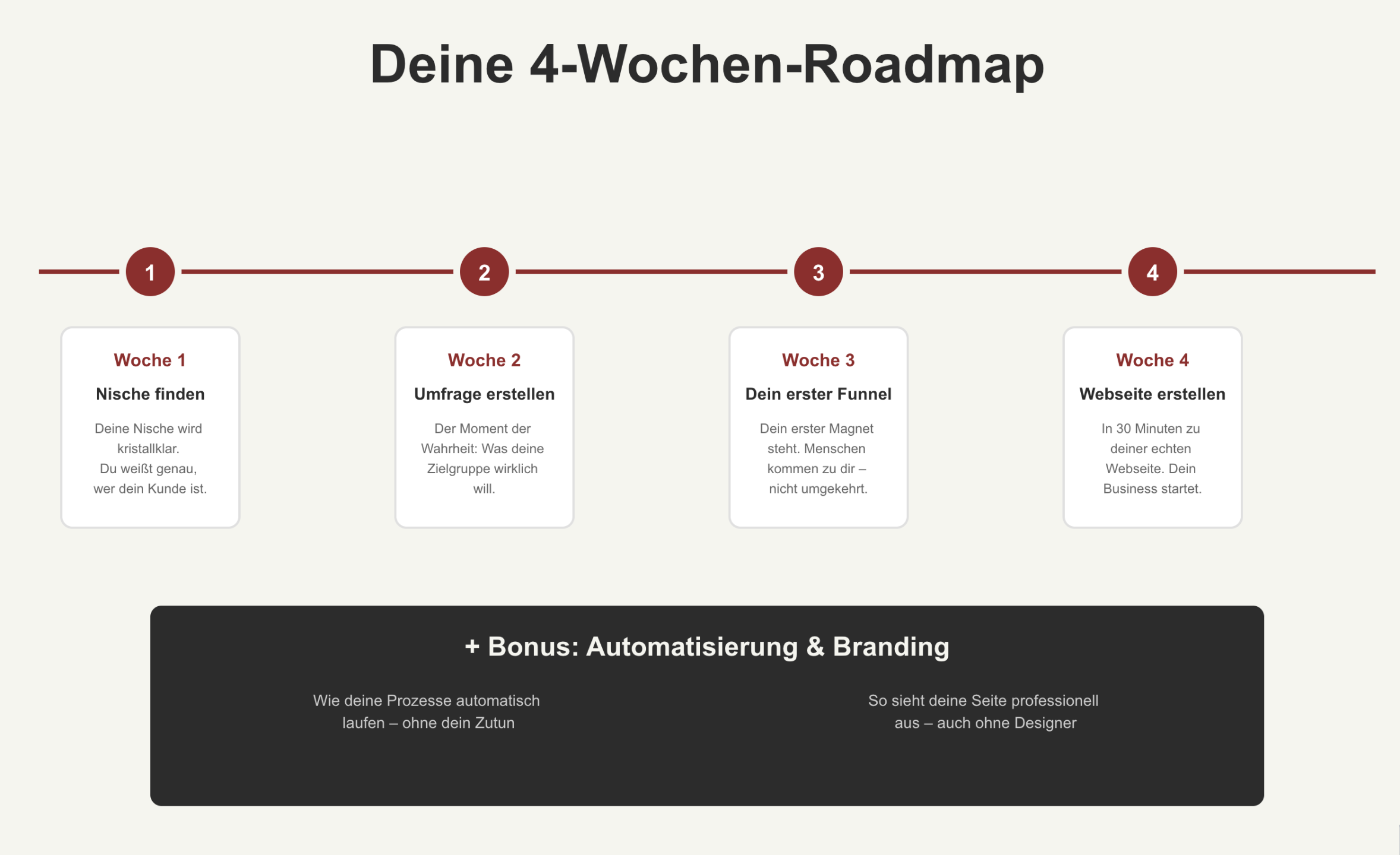Wir finden deine Nische, bauen deine Webseite und holen echte Marktdaten.