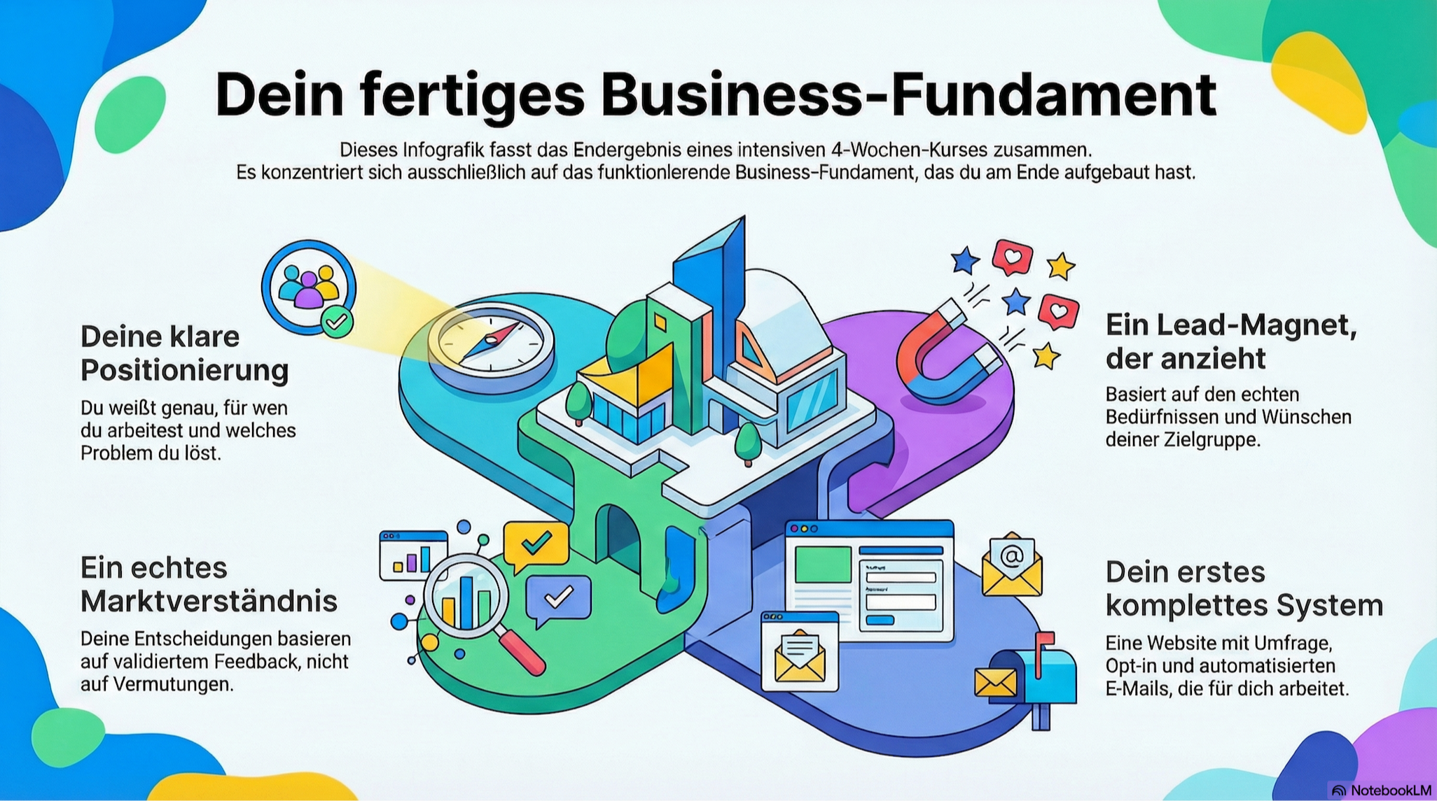 Du hast ein funktionierendes Business-Fundament. Von da an kannst du weiter aufbauen – mit klarer Struktur.