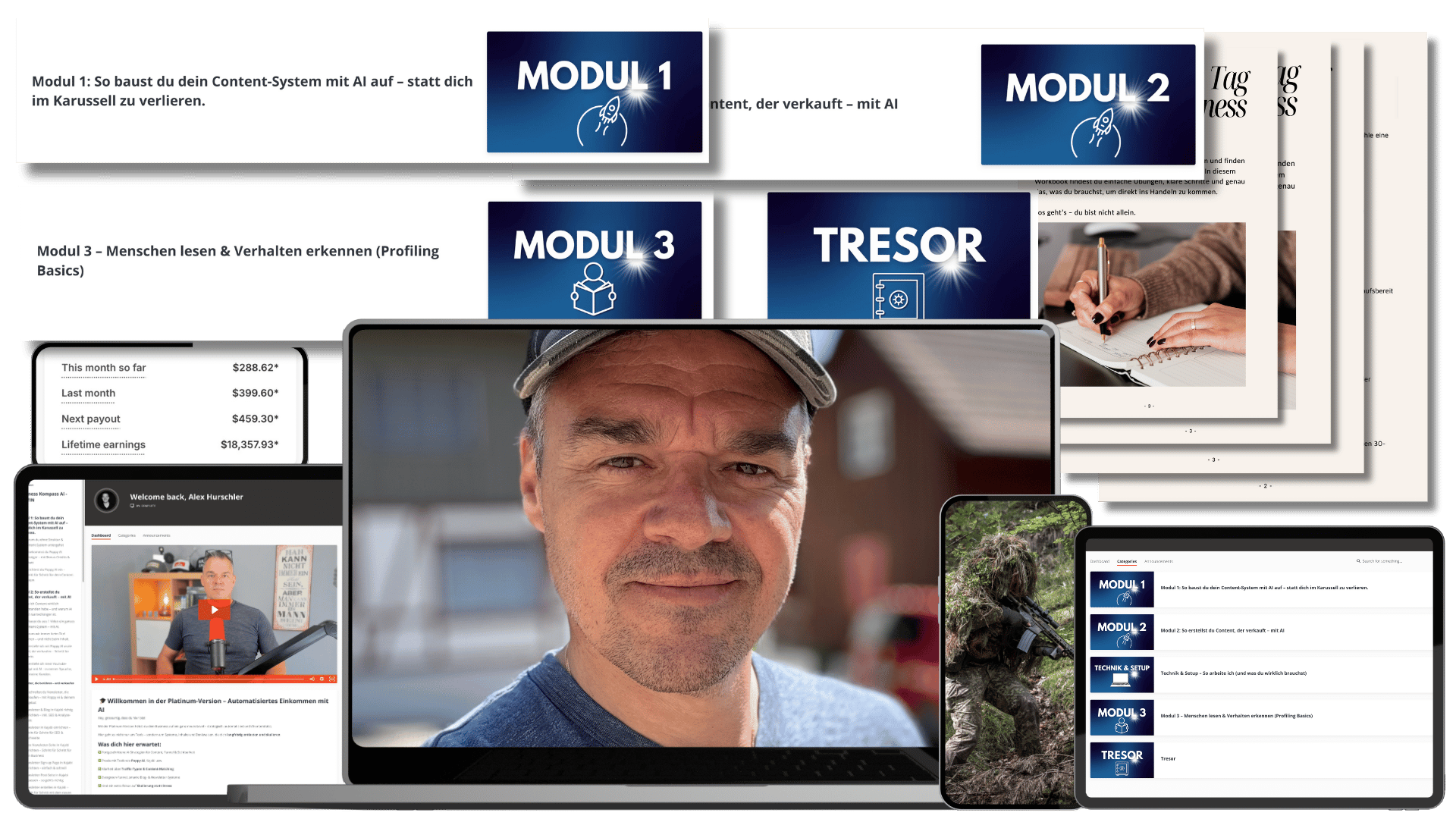 20 Jahre militärische Engpass-Analyse. Auf dein Business angewendet. Alex identifiziert in 30 Minuten was dich wirklich blockiert. 4 Calls pro Monat für die 21 Premium-Mitglieder – 2 Gruppen-Calls, 2 Deep-Dives.