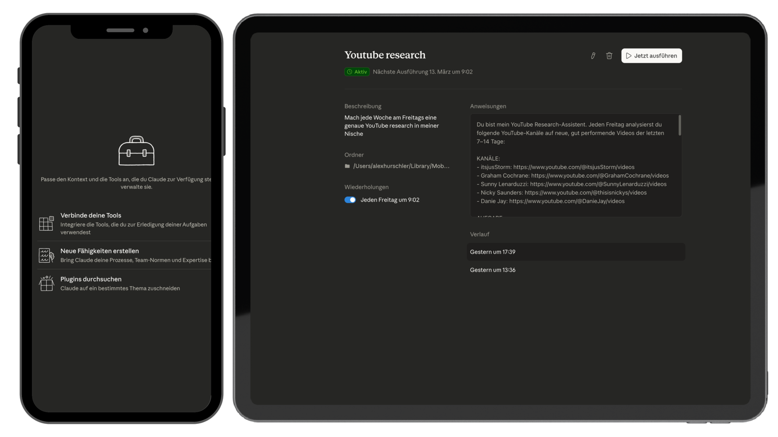 Ich nutze Claude täglich. Für E-Mails. Für YouTube-Recherche. Für Marketing-Texte. Für Planung.