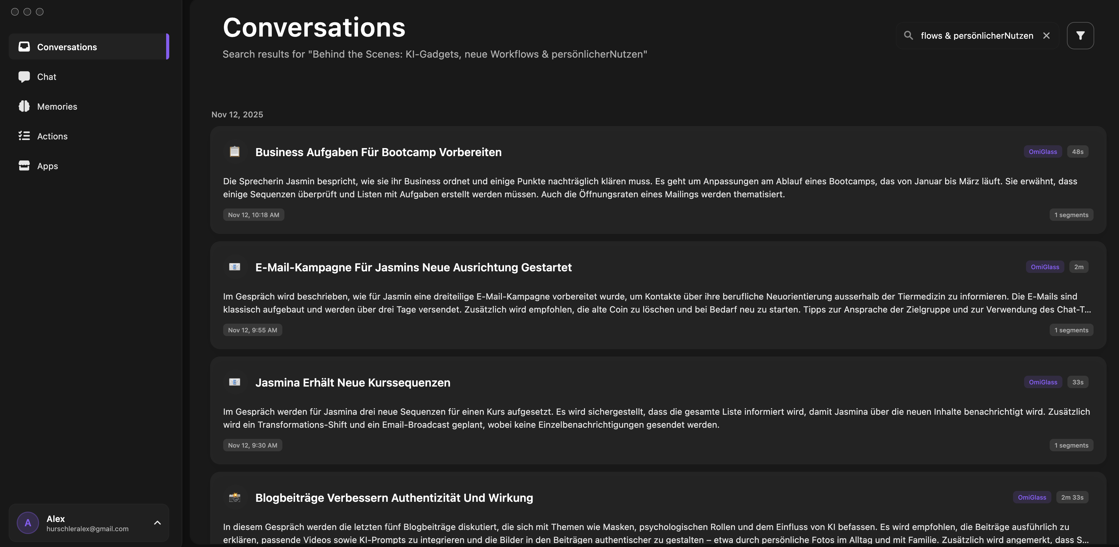 Das Verrückte? Plötzlich hatte ich keine manuellen Notizen mehr. Alles wurde automatisch erfasst, transkribiert und in To-Dos, Blog-Posts oder Social-Media-Content verwandelt.